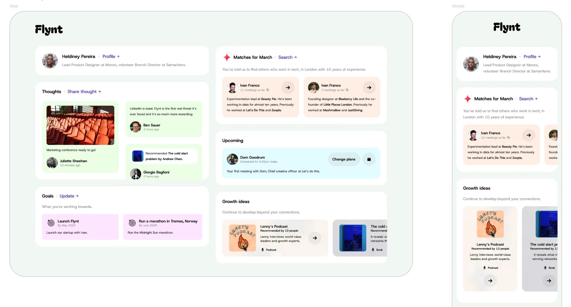 Sunday sprint planning. Every Sunday without fail, we meet to plan the week ahead. It’s become our anchor. A mix of structure and sanity — and a ritual we’ll protect no matter how busy things get. Working on something you genuinely care about. We have no investors (yet). Building Flynt feels like a jam session with your mate. Headphones on, deep work, and something new emerges each week. Running Flynt across five channels at once. We talk in Flynt WhatsApp for Flynt vibes, personal WhatsApp for life admin, Slack for real work, Instagram for motivational nonsense, and LinkedIn to laugh at the internet. It somehow works. Saying “huge”, “love”, or “strong agree” instead of “yes.” We don’t say “yes” anymore. It’s just “huge.” Watching the algorithm do its thing. There’s still a long way to go, but seeing our matching engine pair people who actually get on is a quiet thrill. Hearing from our earliest members. The feedback has been overwhelmingly positive. It’s early, but it’s clear we’re onto something people value. Talking about Flynt so much it becomes a running joke at your wedding. Yes, that happened. Playlists and a new appreciation for niche forms of ambient sound. Startups are won and lost on the quality of your playlist. Take this as gospel. (And MkGee, without MkGee we’d be nowhere)