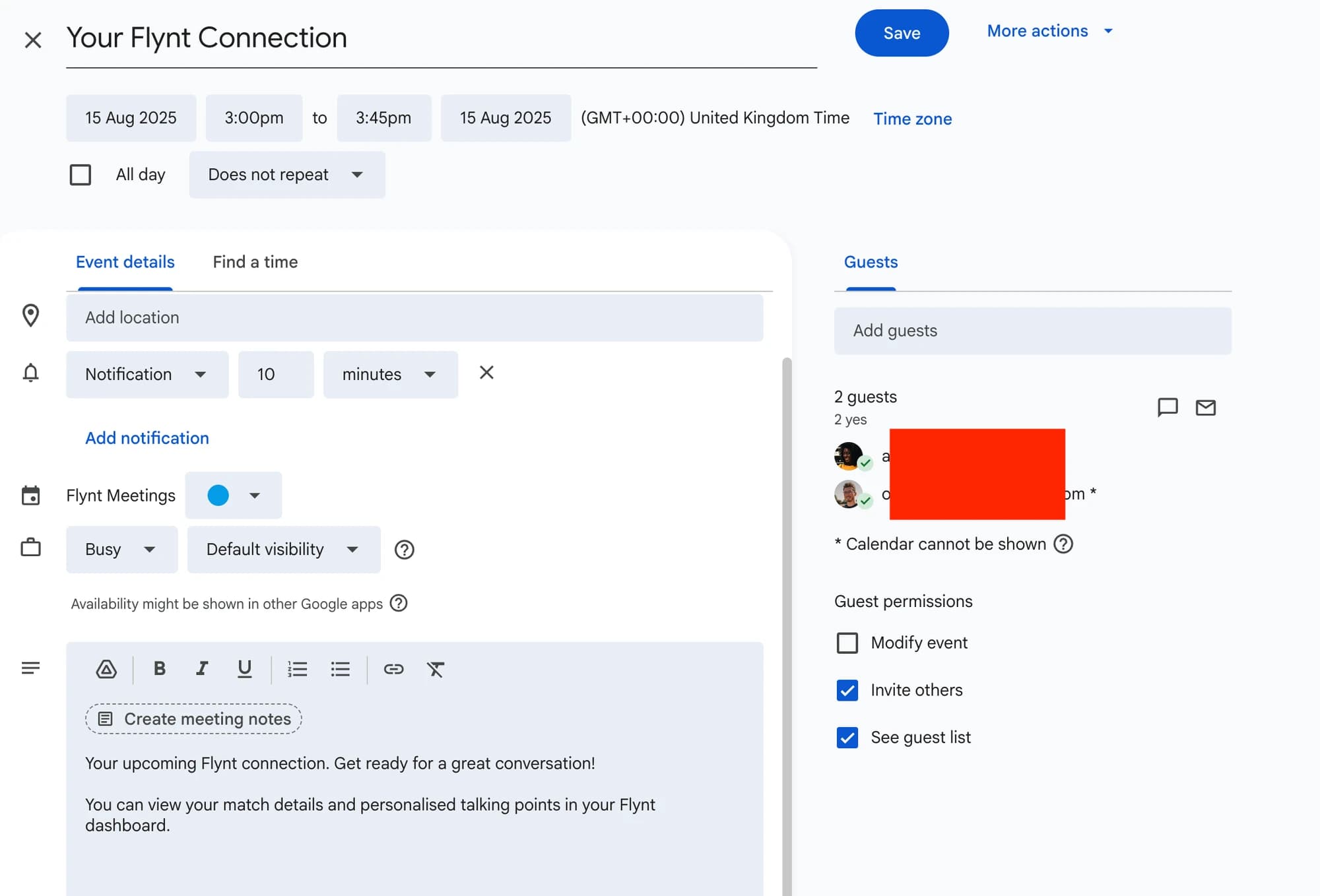 Building code AI-Assisted. “I hear you, I’ve fixed it.” Nope, still broken. “Got it, fixed now.” Nope, still broken. Lesson: give Cursor context — markdown files, clear rules, and lots of patience. Email. Deliverability is harder than it should be — especially when you’re sending both comms and calendar invites. We’ve learnt a lot about SPF, DKIM, and humility. Testability. When you build fast, it’s easy to forget the “test” in test-driven development. We’re fixing that now. We even built a backend time-travel feature that lets us simulate the Flynt experience on different days of the match cycle. Sunday sprint planning after a birthday party. Regret. But it’s still worth it. Fixing calendar permissions on your wedding day. Yes, genuinely. Don’t do this. Sending emails from localhost. We’ve all been there. Sorry to the early alpha users who got those. Merging straight to production. Pure chaos. We now have pull requests, staging environments, and CD tests. Progress. Making time for our loved ones. This one’s been the hardest — for us, and for the people closest to us. The only real solve has been being proactive: communicating openly and being fully present in the small windows we do get together. Also, coding in the kitchen so people can still talk to you while making a cuppa.